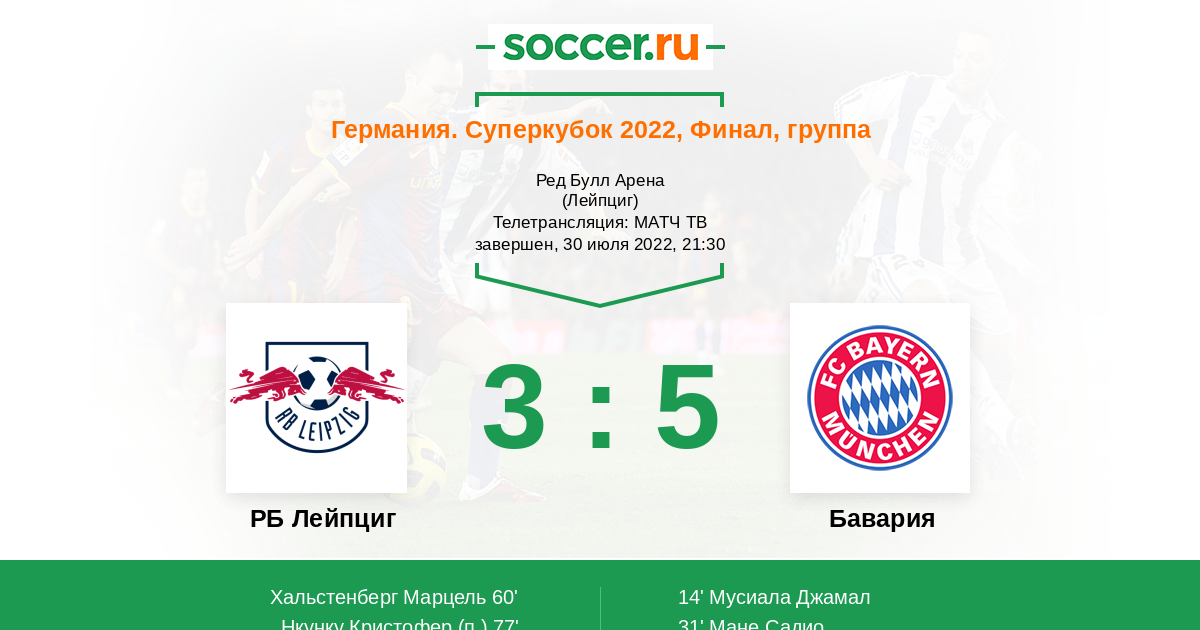 Протокол матча РБ Лейпциг против Бавария