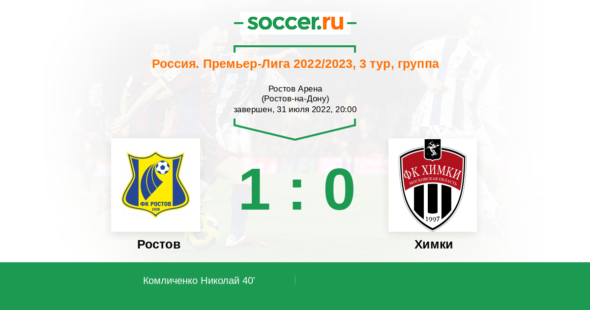 Протокол матча Ростов против Химки