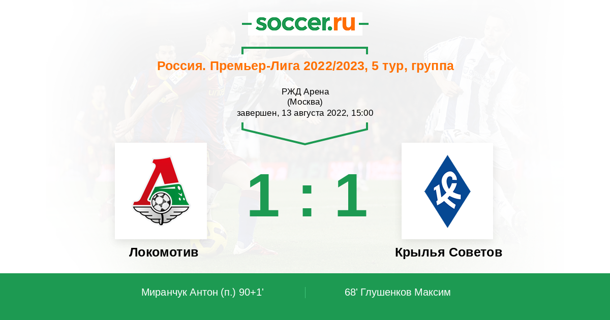 Протокол матча Локомотив против Крылья Советов
