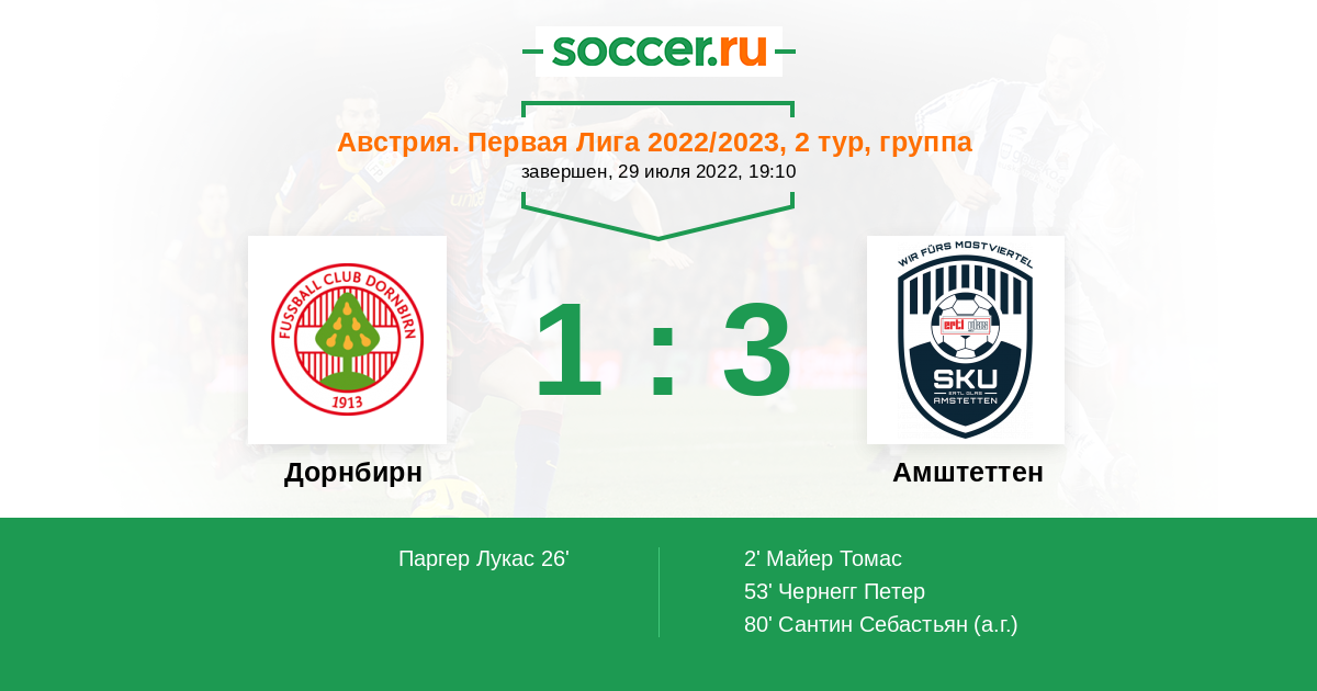 Протокол матча Дорнбирн против Амштеттен