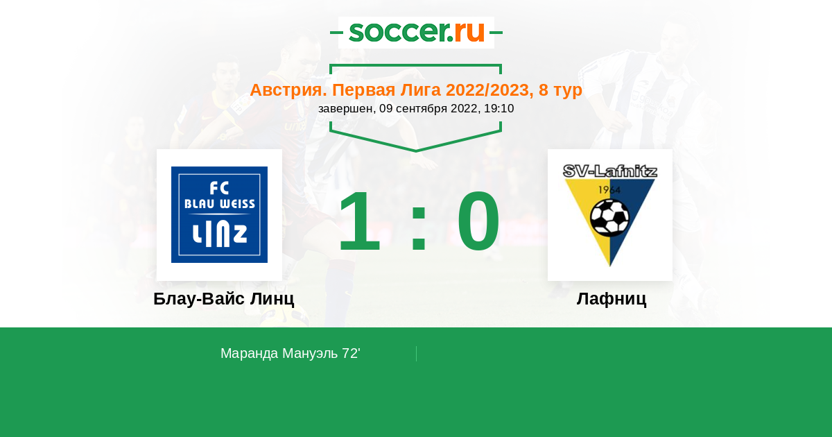 Протокол матча Блау-Вайс Линц против Лафниц