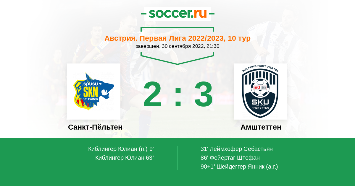 Протокол матча Санкт-Пёльтен против Амштеттен