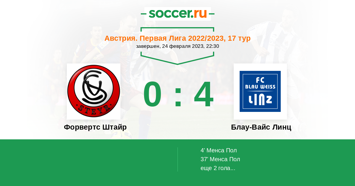 Протокол матча Форвертс Штайр против Блау-Вайс Линц
