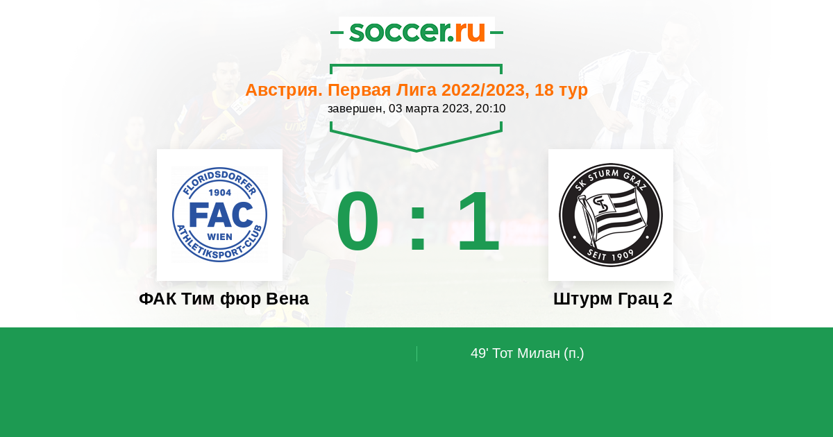 Протокол матча ФАК Тим фюр Вена против Штурм Грац 2