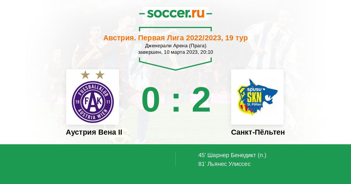 Протокол матча Аустрия Вена II против Санкт-Пёльтен