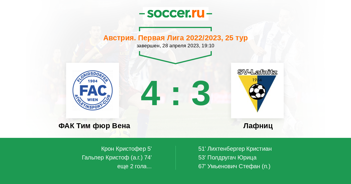 Протокол матча ФАК Тим фюр Вена против Лафниц
