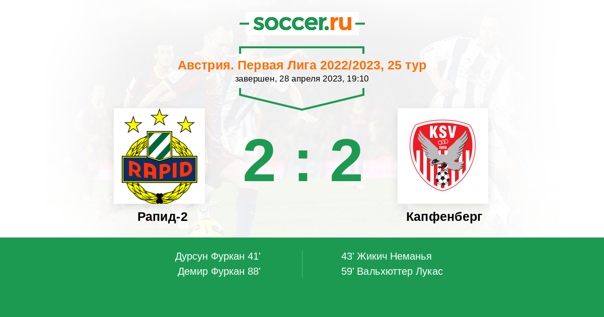 Протокол матча Рапид-2 против Капфенберг