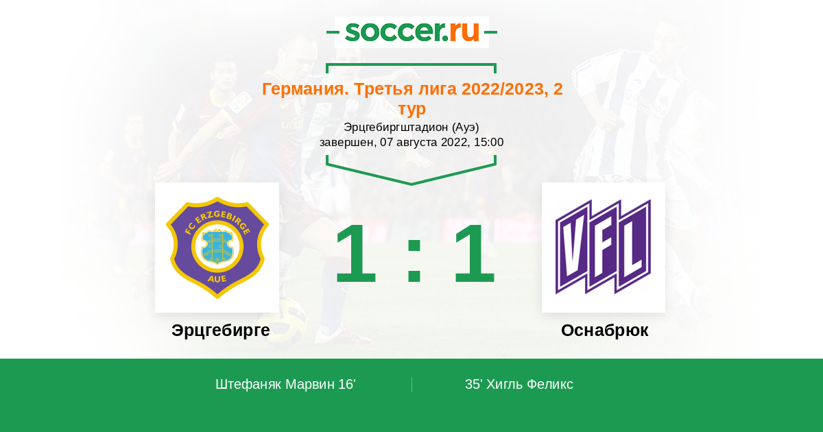 Протокол матча Эрцгебирге против Оснабрюк
