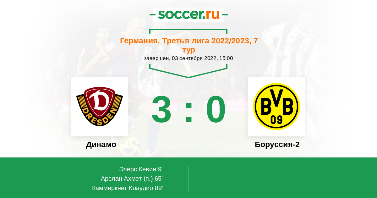Протокол матча Динамо против Боруссия-2