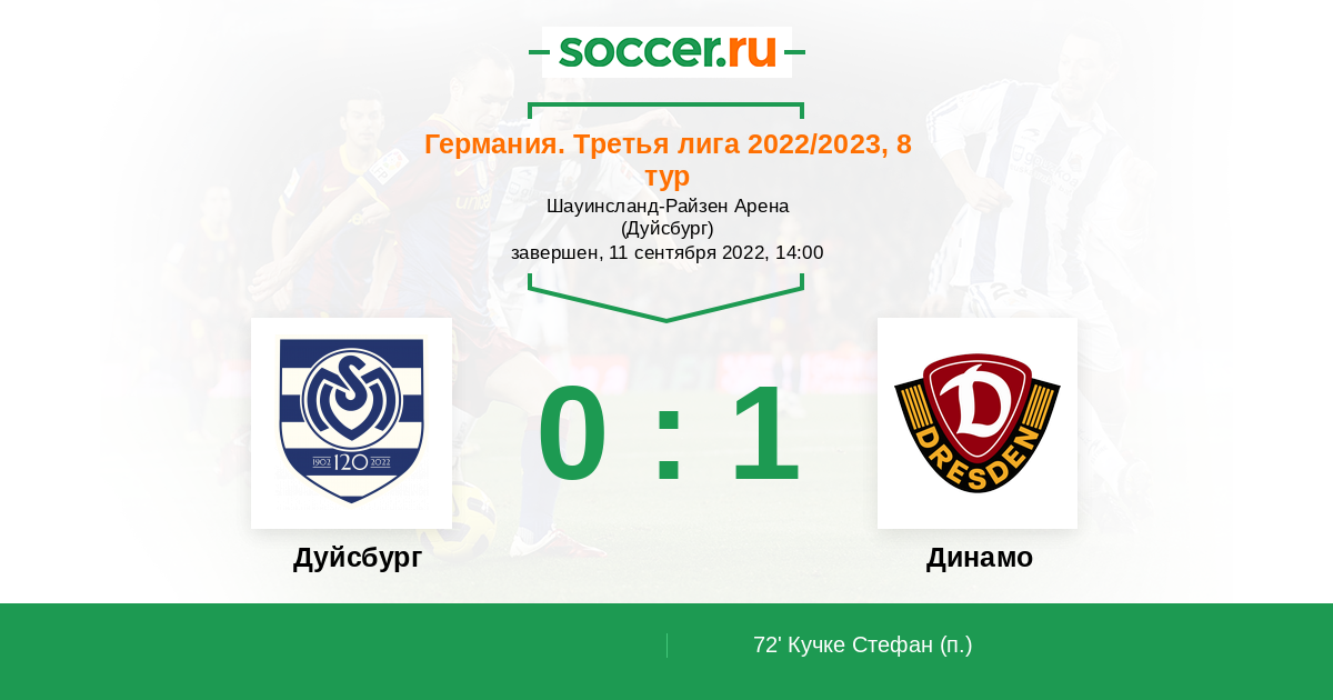 Протокол матча Дуйсбург против Динамо