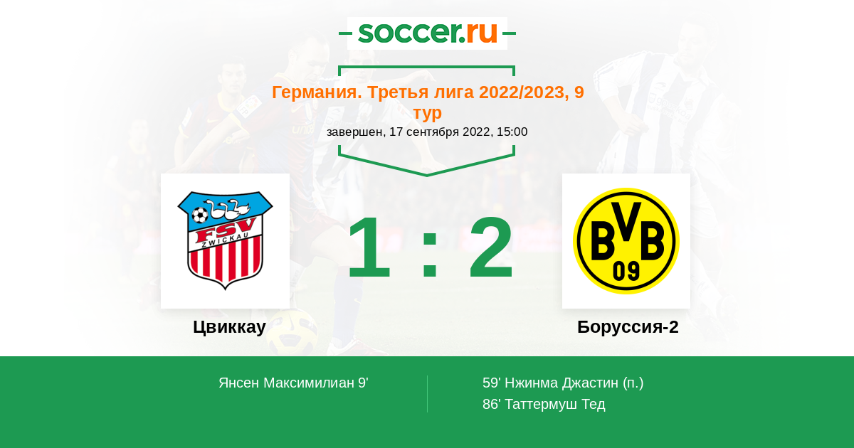 Протокол матча Цвиккау против Боруссия-2