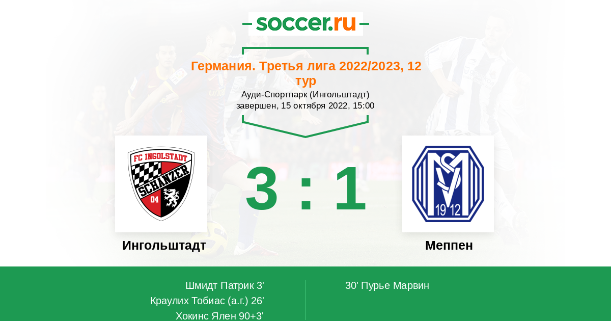 Протокол матча Ингольштадт против Меппен