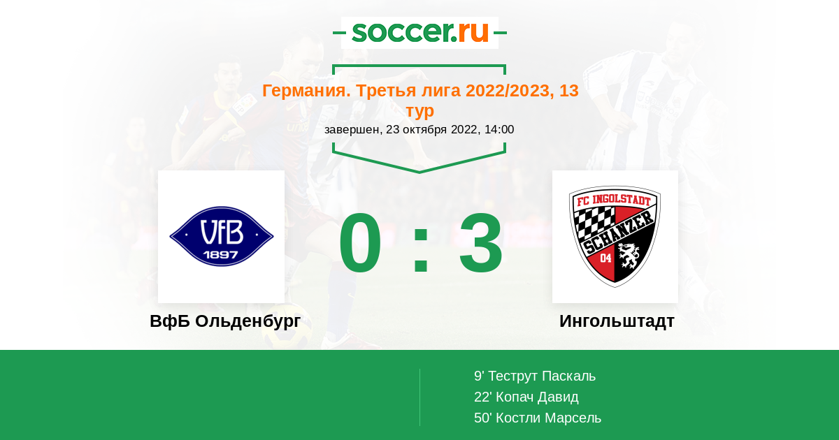 Протокол матча ВфБ Ольденбург против Ингольштадт