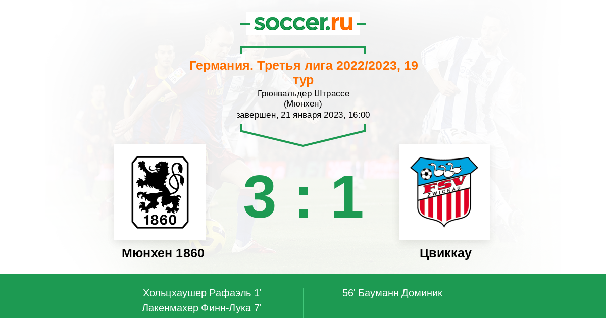 Протокол матча Мюнхен 1860 против Цвиккау