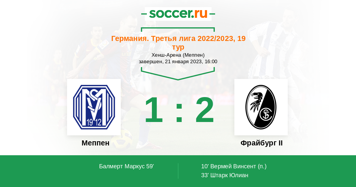 Протокол матча Меппен против Фрайбург II