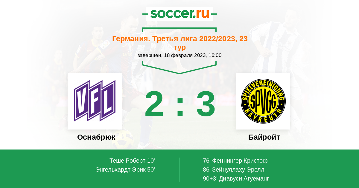 Протокол матча Оснабрюк против Байройт