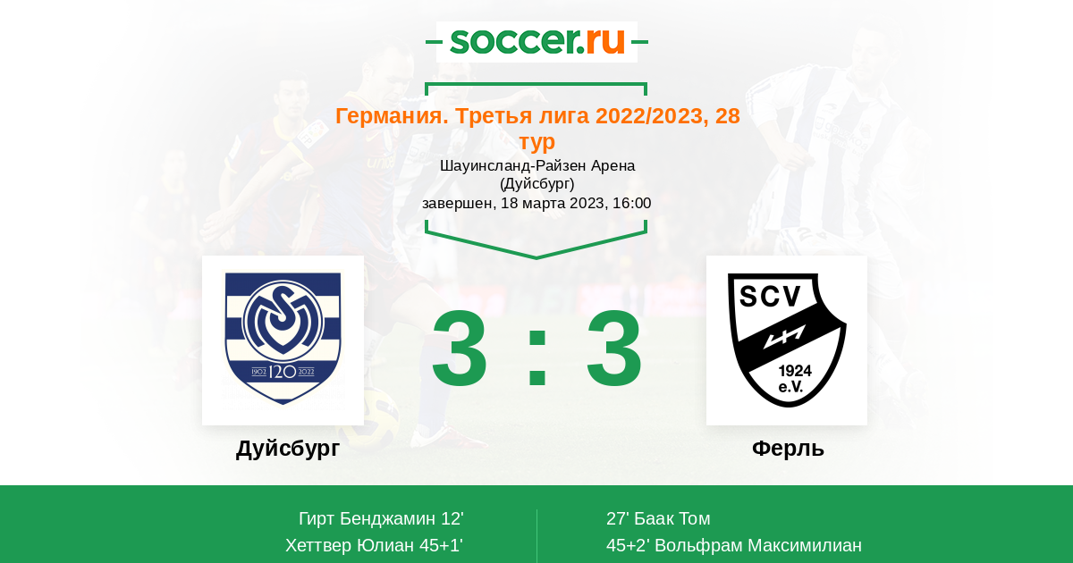 Протокол матча Дуйсбург против Ферль