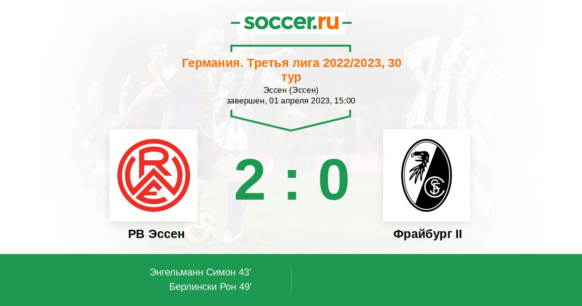 Протокол матча РВ Эссен против Фрайбург II