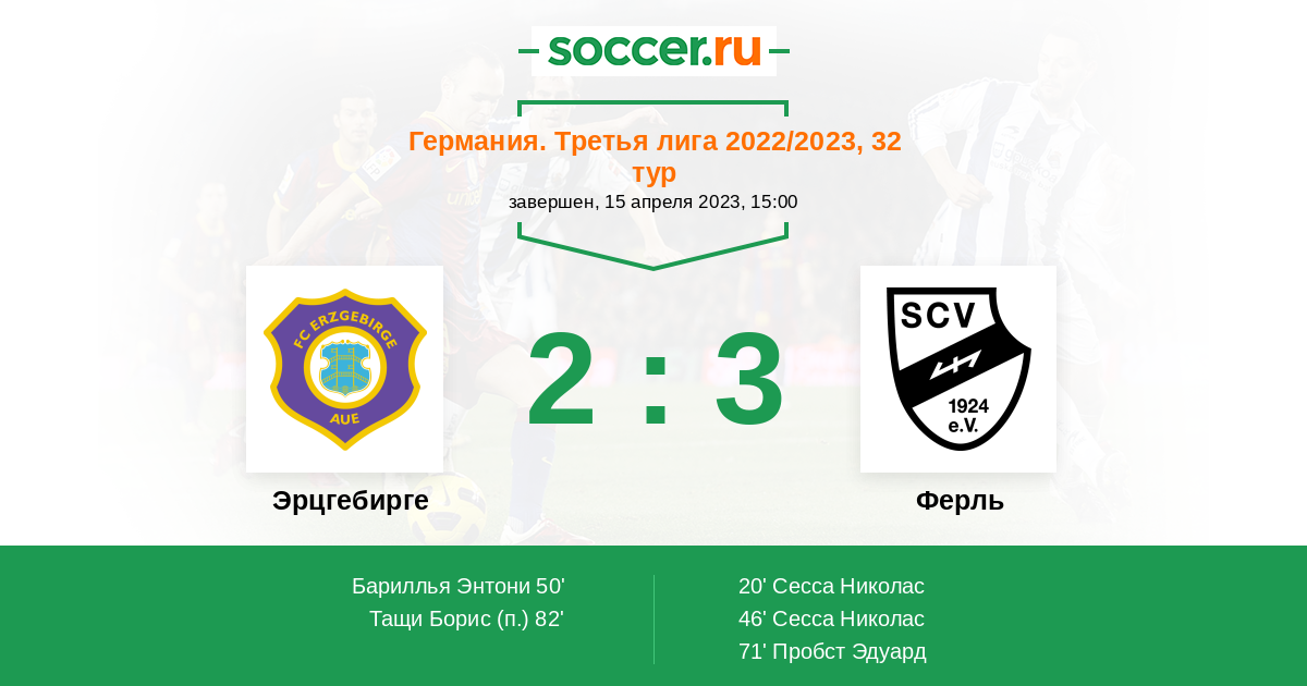 Протокол матча Эрцгебирге против Ферль