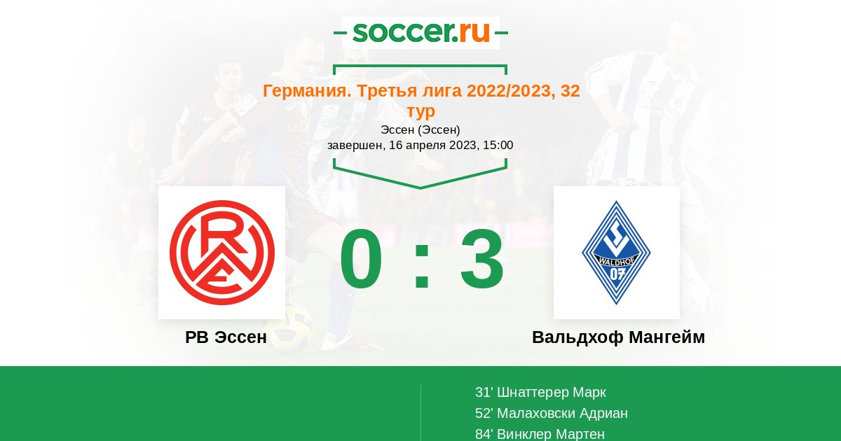 Протокол матча РВ Эссен против Вальдхоф Мангейм