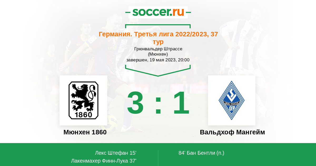Протокол матча Мюнхен 1860 против Вальдхоф Мангейм