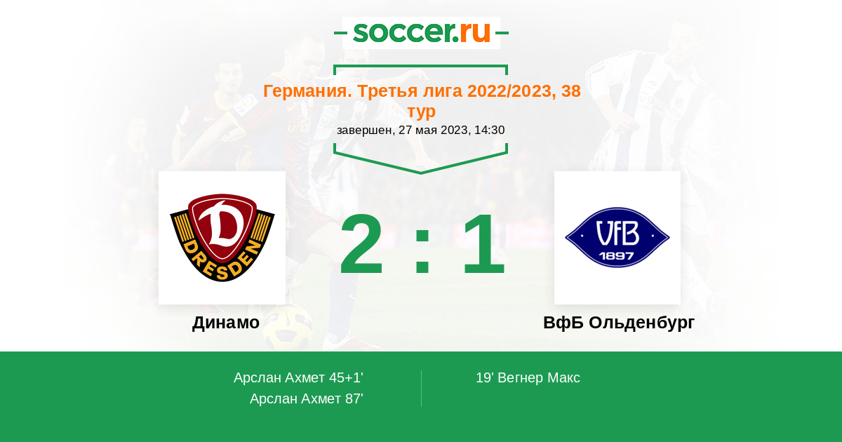 Протокол матча Динамо против ВфБ Ольденбург