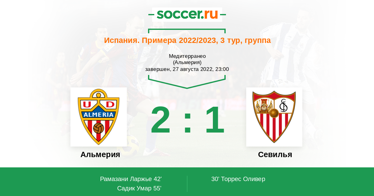 Протокол матча Альмерия против Севилья