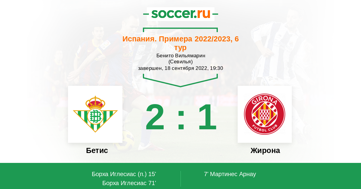 В предстоящем матче 6 - го тура испанской Ла Лиги между командами Реал Бетис и Жирона , явным фаворитом на победу является команда хозяев Реал Бетис , так как они играют дома.