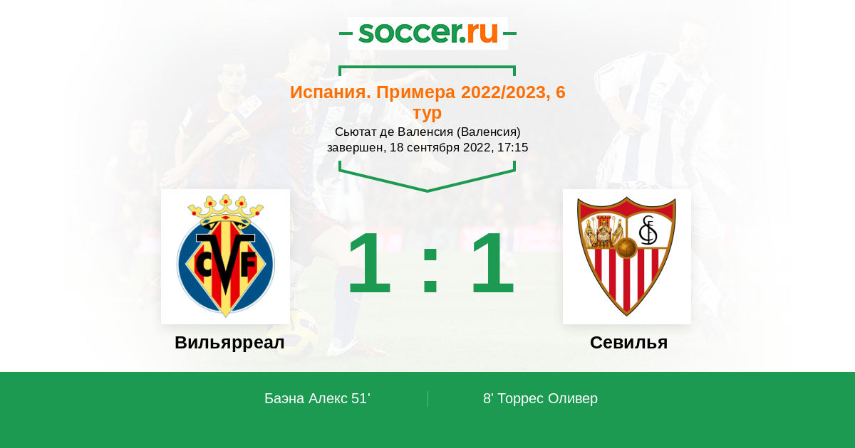 Протокол матча Вильярреал против Севилья
