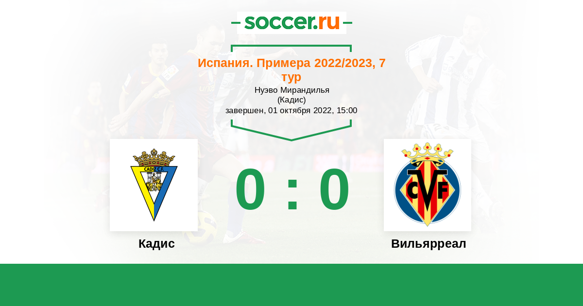 Протокол матча Кадис против Вильярреал