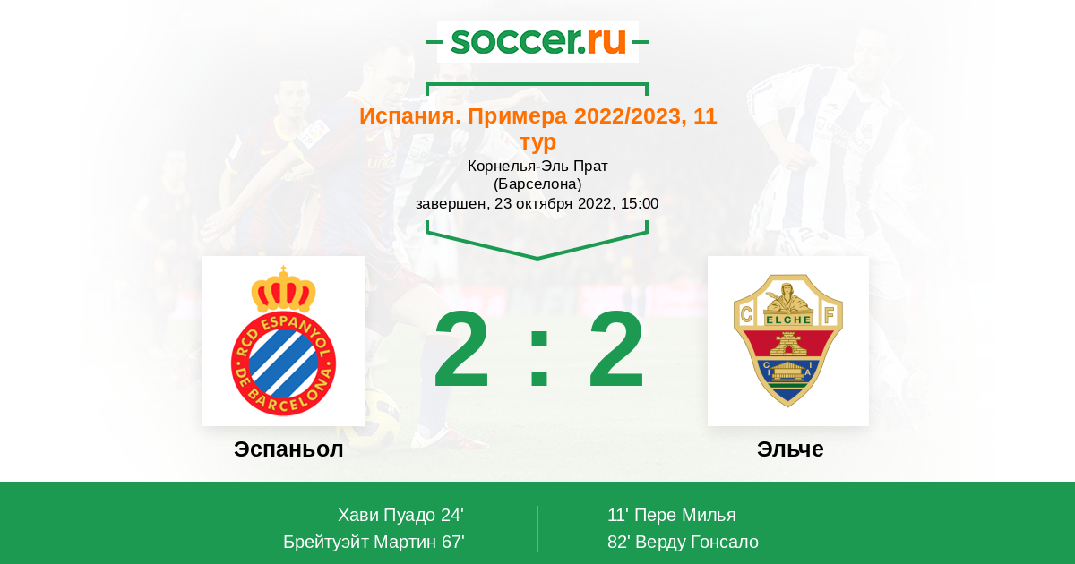 Протокол матча Эспаньол против Эльче