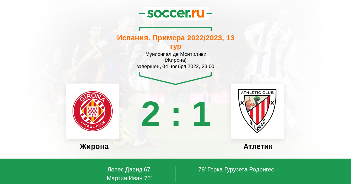 Протокол матча Жирона против Атлетик