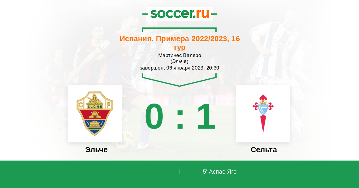 Протокол матча Эльче против Сельта