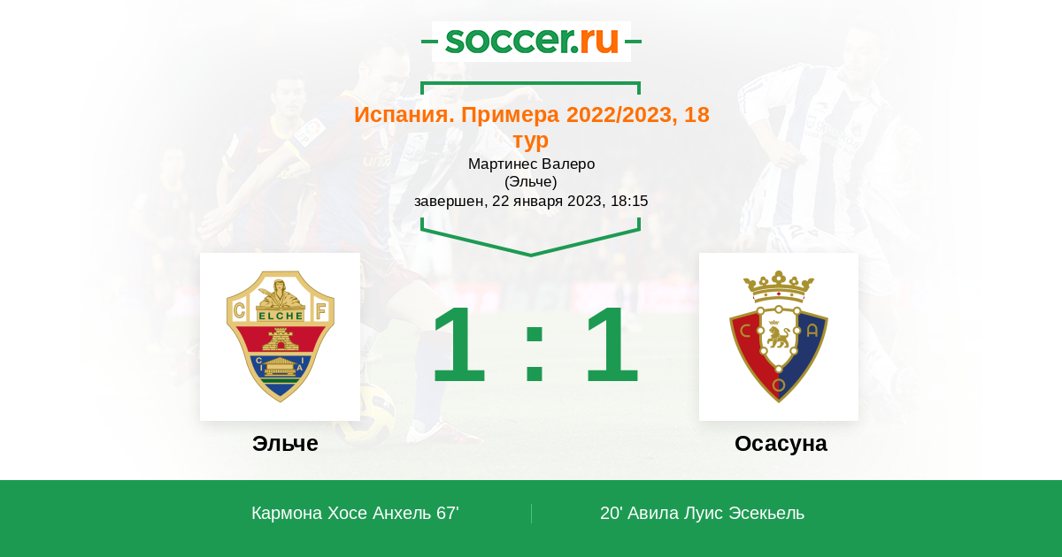 Протокол матча Эльче против Осасуна