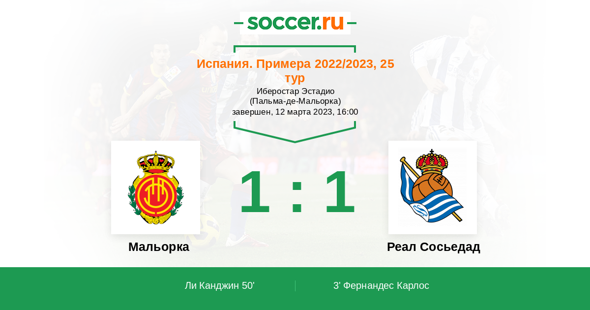 Протокол матча Мальорка против Реал Сосьедад