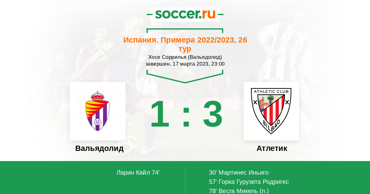 Протокол матча Вальядолид против Атлетик