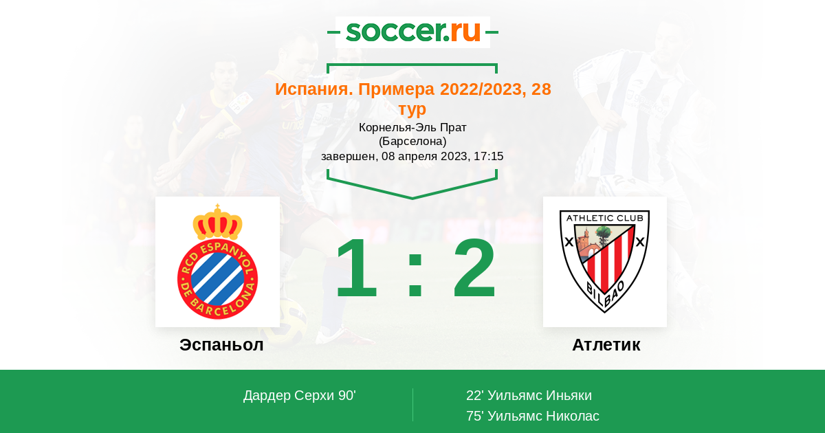22' (0:1) Уильямс Иньяки (9) (Дани Гарсия (14))