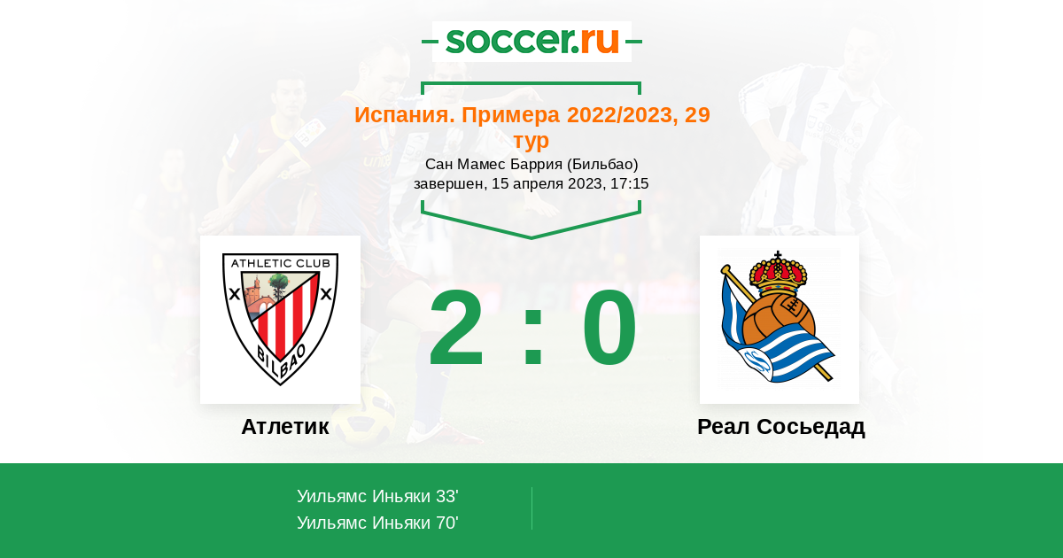 Протокол матча Атлетик против Реал Сосьедад