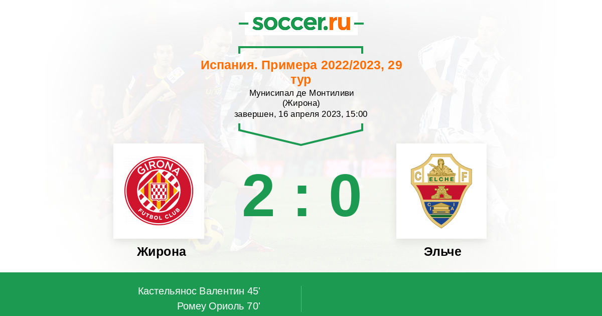 Протокол матча Жирона против Эльче