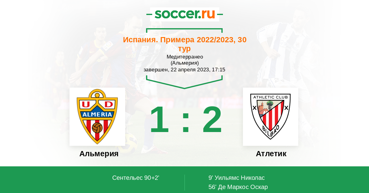 Протокол матча Альмерия против Атлетик