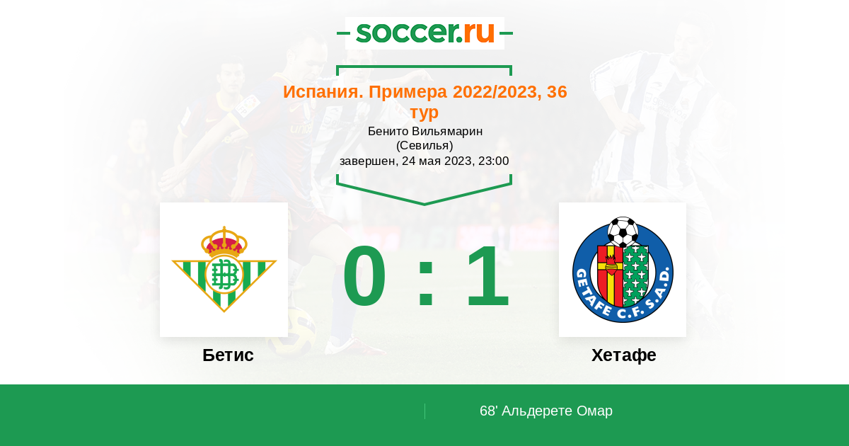 Протокол матча Бетис против Хетафе