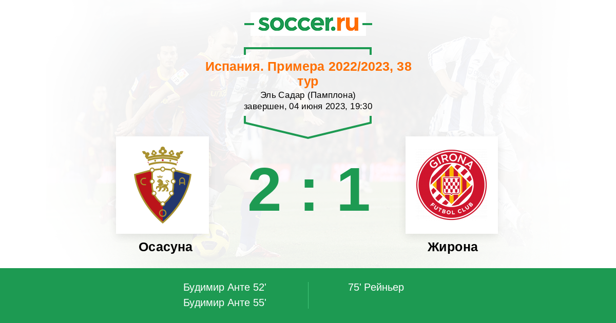 Протокол матча Осасуна против Жирона