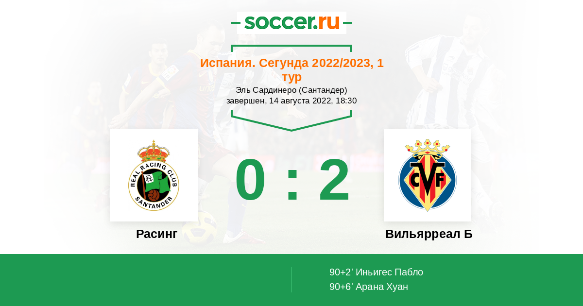 Протокол матча Расинг против Вильярреал Б