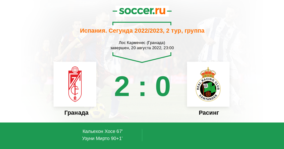 Протокол матча Гранада против Расинг
