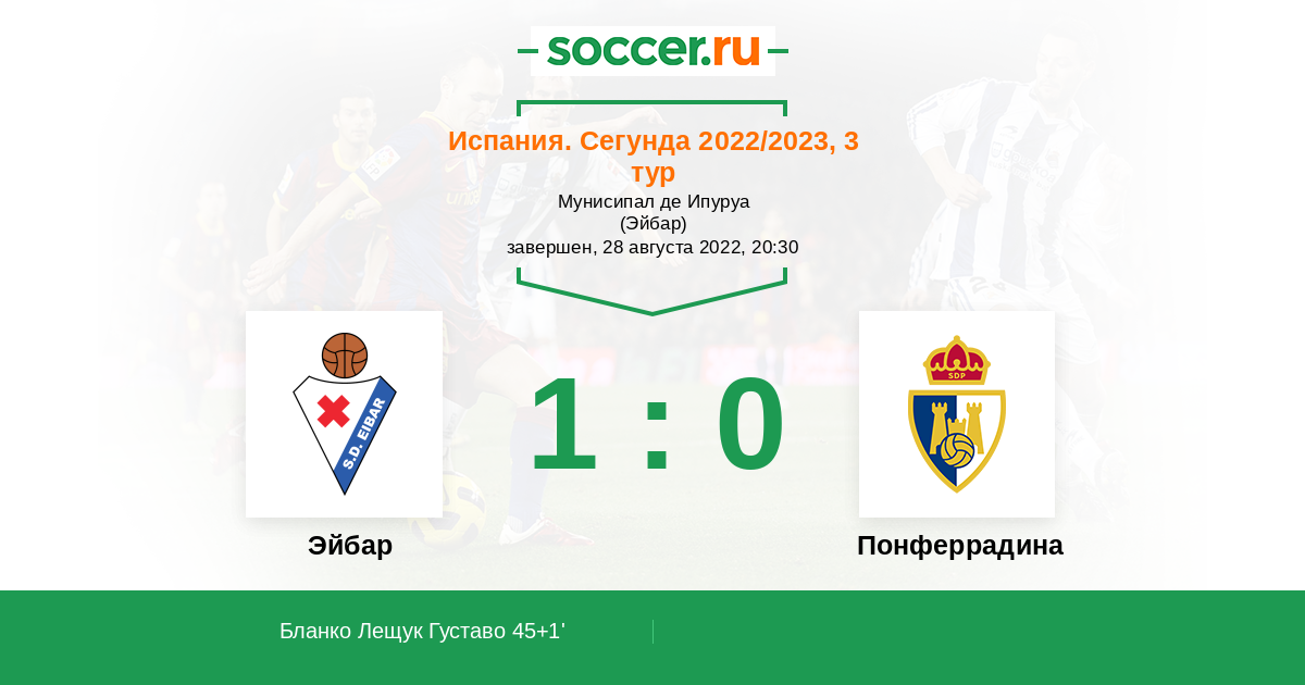 45+1' (1:0) Бланко Лещук Густаво (9) (Акече Агер (10))