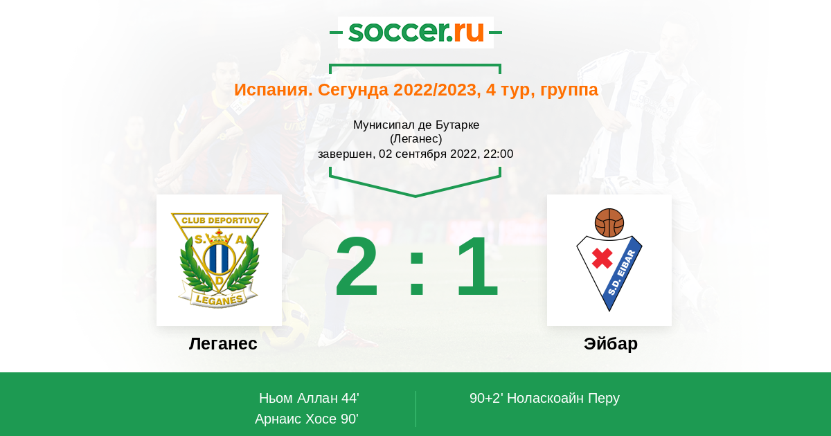 Протокол матча Леганес против Эйбар