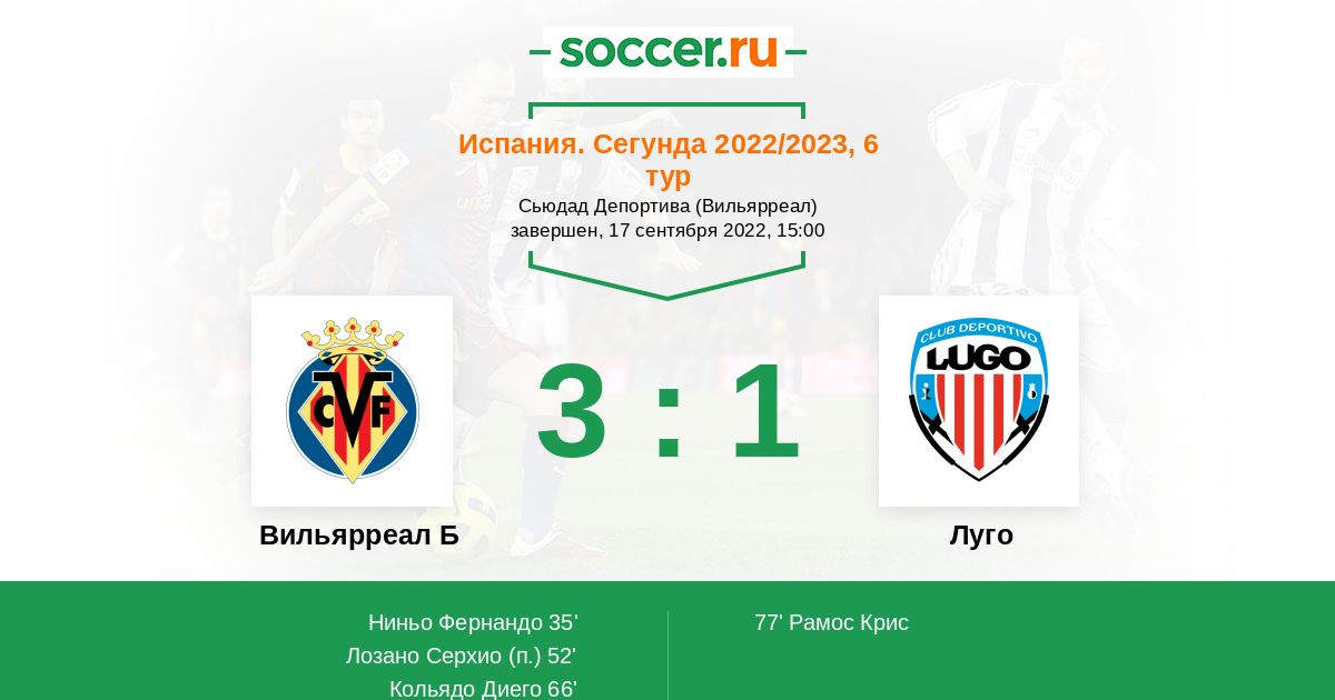 Протокол матча Вильярреал Б против Луго