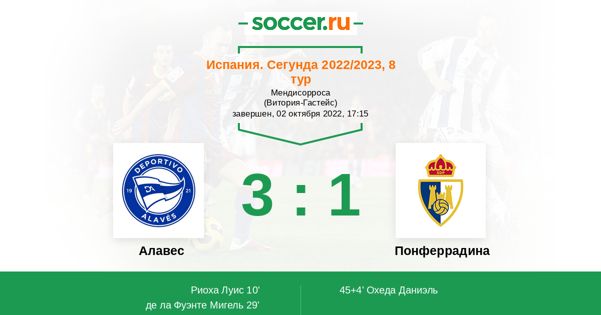 Протокол матча Алавес против Понферрадина