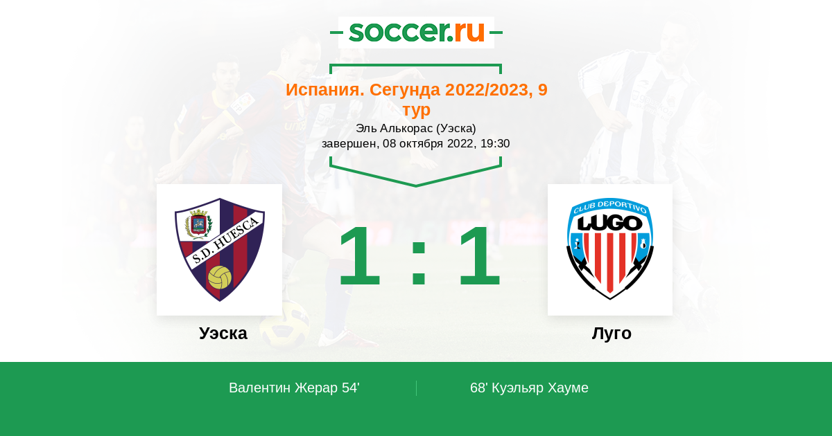 Протокол матча Уэска против Луго