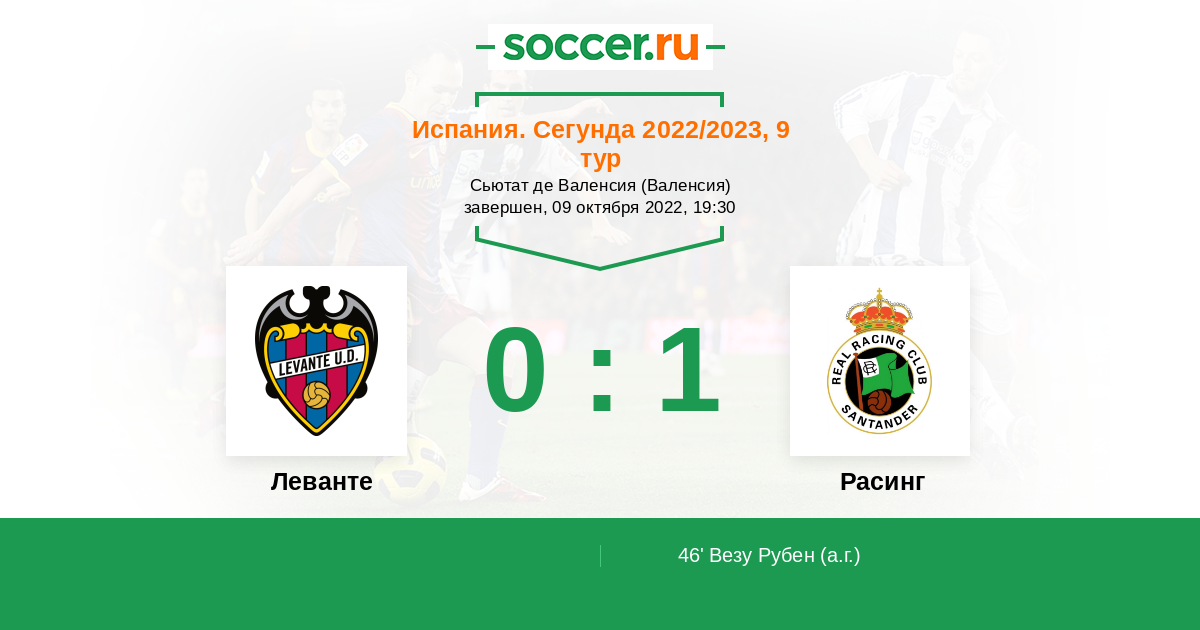 Протокол матча Леванте против Расинг
